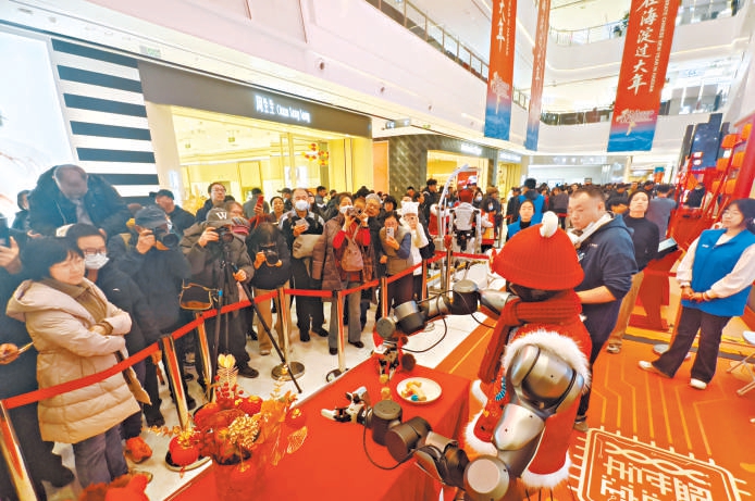這個春節,機器人正從舞台走進商圈,成為陪伴市民遊客的新“搭子”。在海澱科技廟會,百餘件機器人展品集結,人形機器人、具身機器人帶來英歌舞、瑞獅、樂隊演奏、武術表演等節目。在隆福寺商圈,機器人“調酒師”的機械臂翻轉搖晃片刻後,一杯冒著氣泡的“桔裏局氣”就遞到了人們手中。“太酷了!這是我見過最‘賽博’的春節。”舉著特調飲品的市民王先生說,“這是獨屬咱北京孩子的味覺記憶,真夠局氣!”(楊天悅 鹿楊 趙語涵)