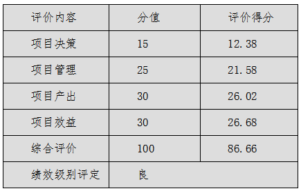 經評價,該項目綜合評價得分86.66分,績效級別評定為“良”。