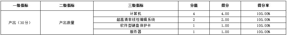 實訓基地建設-攝影攝像技術專業後期製作剪輯實訓室升級改造項目為保障攝影攝像專業教學需求,滿足教學過程對影視後期剪輯製作的硬件需求,履行了完整申報程序,嚴格開展項目論證和預算編製,科學安排資金使用,總體決策情況良好。決策指標分值10分,得分為9.44分,得分率93.4%。得分情況見表4。