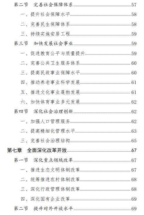 ——社會治理能力和水平有效增強。體製機製改革全麵深化,重點領域改革成效顯著。民主法治建設深入推進,依法行政水平、司法公信力不斷提高。綜合治理全麵加強,人口規模得到有效控製,城市管理更加精細智能,農村管理更加規範有序。社會環境更加穩定和諧,重點食品安全監測抽檢合格率大於98%,藥品抽驗合格率大於99%,億元GDP生產安全事故死亡率降幅達到市級要求。