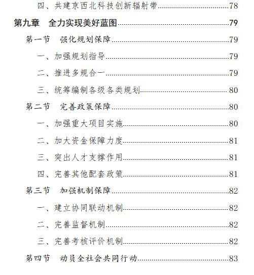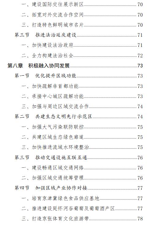 結合世園會、冬奧會及區域經濟社會發展對交通的需求,加強區域間交通網絡規劃、建設及運營組織,破除體製機製障礙,加快建設智能高效的交通運輸體係,大幅提升區域交通水平和綠色發展大事交通保障能力。
