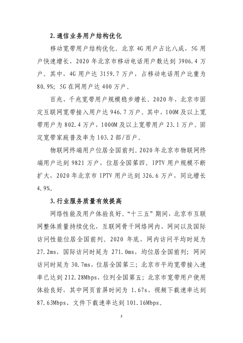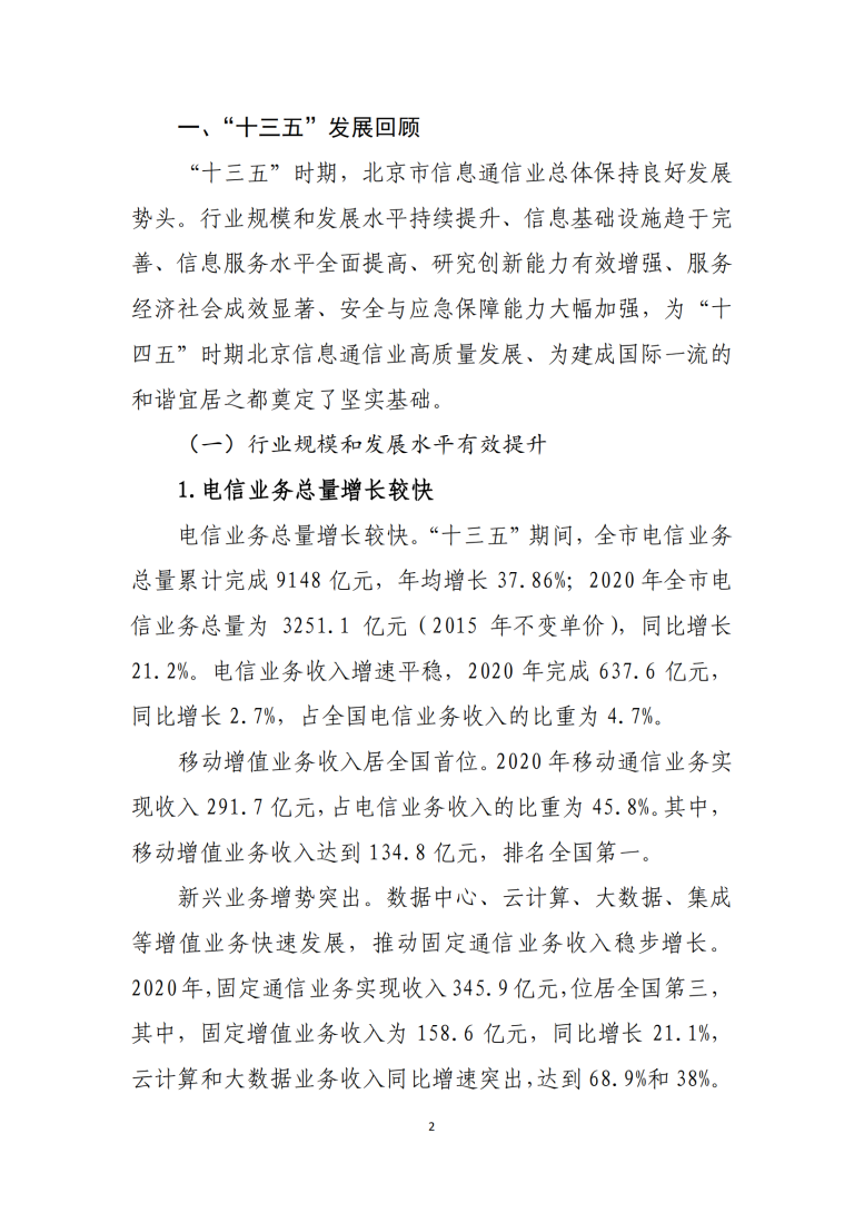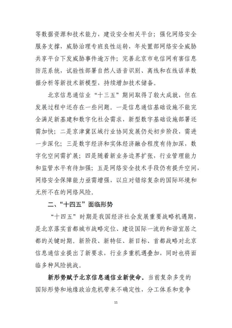 北京市“十四五”信息通信行業發展規劃