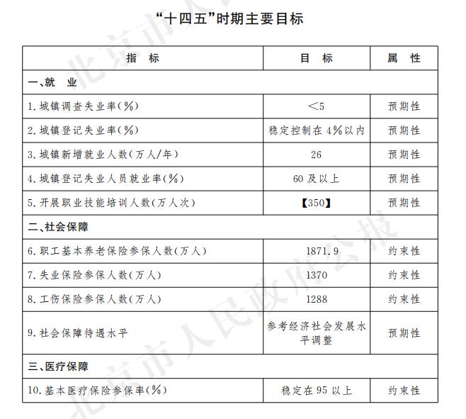 北京市“十四五”時期人力資源和社會保障發展規劃(包括醫療保障)