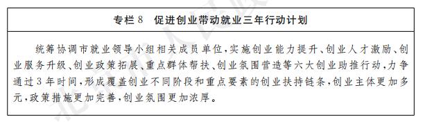 激發勞動者創業創新積極性。釋放創業帶動就業倍增效應,推動各項創業支持政策與就業帶動成效掛鉤,對吸納勞動力實現穩定就業的企業及其經營者予以獎勵。健全青年創業“陪跑”機製,搭建大學生創業板、高校、創業園區、創業競賽之間的深入對接工作體係,發揮青年創業引領效應。鼓勵高校畢業生、科技人員、農村轉移勞動力、退役軍人等群體帶著資金、技術返鄉入鄉創業,培育一批能工巧匠型創業領軍人才,助力美麗鄉村建設。加大個體經營和靈活就業人員創業扶持,支持微商電商、網絡直播等多樣化的自主創業就業,激發全社會創新創業創造動能。到2025年,新增參保創業主體20萬戶,帶動就業崗位100萬個。