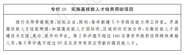 加強專業技術人才培養。鼓勵高精尖產業和前沿科技領域設立博士後科研工作站,力爭實現中關村科技園區博士後科研工作站全覆蓋;擴大博士後培養資助麵,加大國際化培養力度,支持博士後在京就業創業,培養一批科技創新主戰場的青年拔尖人才。深入實施專業技術人才知識更新工程,做強做精高級研修項目,統籌落實專業技術人員能力提升和新職業專業技術人員培養培訓項目,強化高層次、急需緊缺和骨幹專業技術人才素質提升,推進專業技術人員繼續教育基地規範化建設。進一步完善評標專家管理機製,為北京地區公共資源交易活動提供合格的評標專家資源。建立專技類職業資格培訓行業規範,完善監督管理體製。