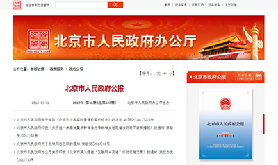 優化《北京市人民政府公報》線上線下服務。全年出刊48期,刊登市政府及各部門文件703件,發行48.8萬冊,免費向中央國家部委、市區行政機關、重點企業、街道、社區、村(居)委會贈閱,並在市、區行政服務大廳、檔案館、圖書館等信息公開場所提供查閱服務。升級改版政府網站公報網頁,增加文件展示格式、分類檢索、二維碼分享、政策解讀鏈接等功能。依托"北京發布"新媒體矩陣、"首都之窗"微信公眾號打造"掌上公報",把《政府公報》推送到市民"指尖上"。