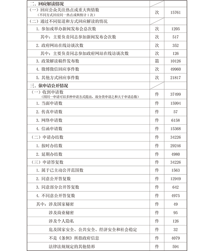 全市37499件申請辦結數為34226件,其中按時辦結數29246件,延期辦結數4980件。其餘未到答複期的按照《中華人民共和國政府信息公開條例》時限規定在2018年答複。