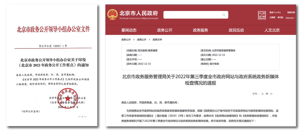 2022年北京市“政府信息公開工作年度報告”集中公開專題頁麵