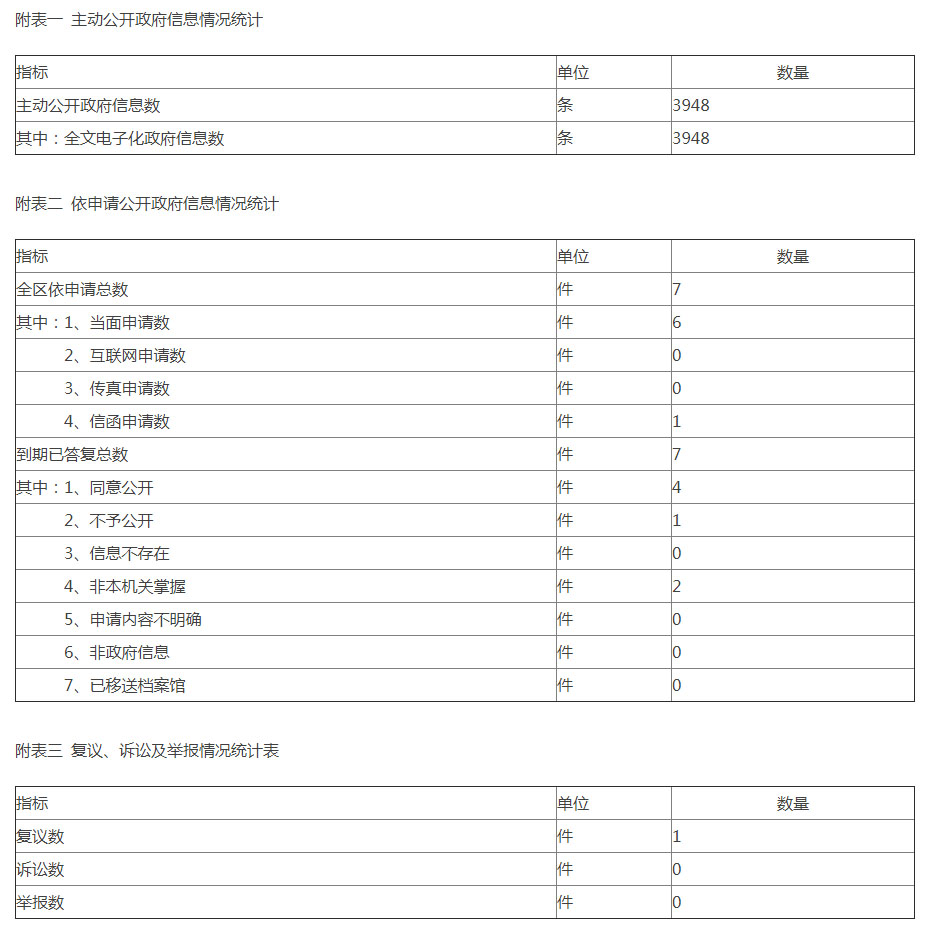 全文包括概述,主動公開政府信息的情況,依申請公開政府信息和不予公開政府信息的情況,因政府信息公開申請行政複議、提起行政訴訟的情況,政府信息公開工作存在不足及改進措施。