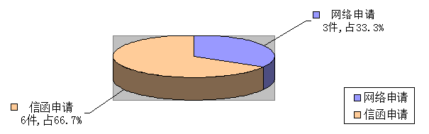 2016年,我局共受理政府信息公開申請9件,申請方式中,通過網絡申請3件,占總數的33.3%;以信函形式申請6項,占總數的66.7%。