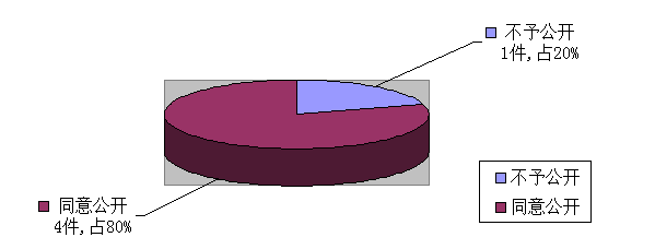 我局受理的9件政府信息公開申請,均在法定之日內向申請人出具了登記回執,有5件在2016年12月31日前按時辦結並向申請人寄發了答複告知書,其中,4件同意公開,向申請人提供相關信息占總數的80%;1件因涉及國家秘密“不予公開”,占總數的20%。另外4件因申請時間為2016年12月下旬,於2017年1月答複並向申請人寄發了答複告知書,計入2017年度數據統計。