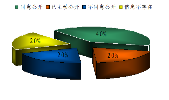 按時辦結數5件,答複率100%,其中同意公開2件,占答複數40%;屬於已主動公開1件,占答複數20%;不是《條例》所指政府信息,不同意公開1件,占答複數20%;申請信息不存在1件,占答複數20%。