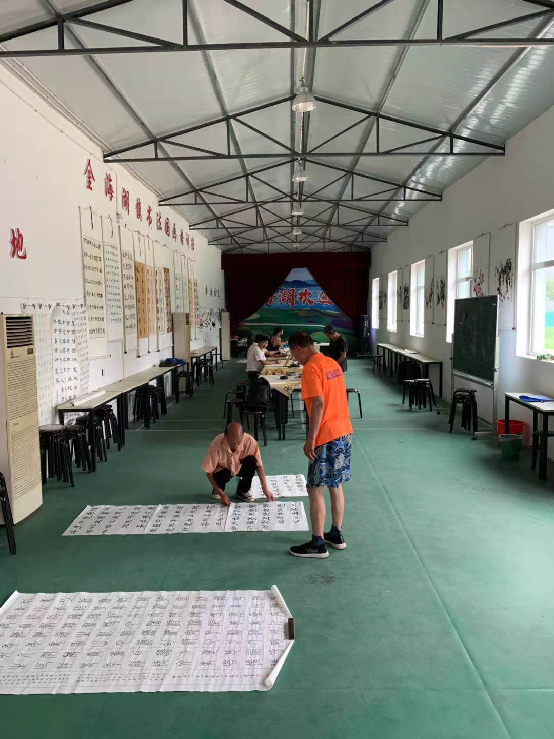 金海湖鎮文化服務中心於2015年開工建設,在2017年年底完工,總建築麵積3600平米。設有綜合活動室、圖書室、報刊閱覽室、書畫書法培訓室、演出排練室、多功能廳等服務項目。服務中心管轄28村,村村成立了秧歌隊、舞蹈隊,19個村成立了小劇團,9個小劇團堅持常年演出,其中5個小劇團獲得了營業性演出許可證。特色文化活有:每年一次的廣場舞大賽、戲曲大賽、小劇團擂台賽;17個班每周1次的書法書畫培訓活動、出版了我鎮學員的書法書畫作品集《金海藝林作品集》等。
