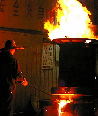 表演前,鐵花匠人在1600攝氏度的煉鐵爐中加入各種金屬煉製表演用的鐵水。