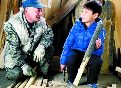 ▲鐵花匠人向孩子講述鐵花的曆史,演示表演工具製作的過程。