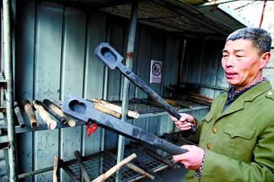 ▲表演用的木勺使用時間長了都被鐵水沁得漆黑。