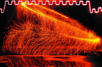 “寒鐵熔爐,化灼水,滾滾烈焰。舉目去,流火似金,濺星如電。但見匠夫一揮臂,衝天鐵花飛寰宇。千萬點,夜放花千樹,天地間。”打鐵花是流傳於京冀晉豫等省市民間的一項古老技藝,至今已有千年曆史。長城鐵花則是孕育於北京延慶古老長城腳下的特殊民俗文化,初源於煉鐵工匠們的祭祀活動,經過後人的努力和大膽創新,現在的長城鐵花已由單一的打樹花發展為擊花、潑花、拍花等多種方式,創新出“二龍戲珠”、“火樹銀花”、“驚濤駭浪”、“空中劈火”和“徒手風雷”5個篇章的鐵花表演節目,成為中華“夜文化”中一道獨特的風景線。