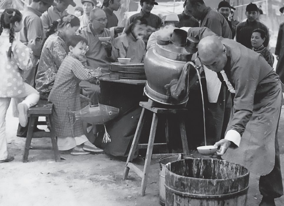 茶湯李始創於1858年,創始人李同林在老北京廠甸設攤兒,專營茶湯、油茶、元宵、扒糕、涼刮條麵等小吃。1886年,茶湯李遷至天橋,名聲大噪。1984年,茶湯李第四代傳人李躍在傳承傳統技藝的基礎上,改進了茶湯工藝。如今,茶湯李的茶湯係列包含了茶湯、油茶、杏仁茶、鹹味麵茶、蓮藕茶、菱角茶、牛骨髓油茶、奶茶等品種。茶湯稠而不膩,香甜綿細,深受老北京人的喜愛。北京廟會期間,地壇、廠甸、龍潭湖、大觀園、白雲觀、朝陽公園都有茶湯李設置的攤位,那熟悉的吆喝聲、熱氣騰騰的大茶壺、專業的衝製技藝、香噴噴的茶湯,吸引著遊客紛至遝來。