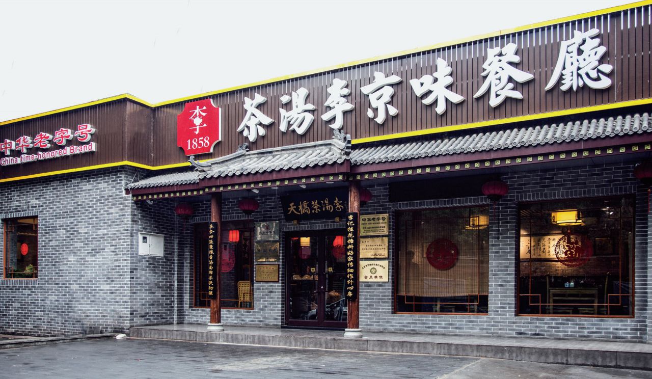 茶湯李始創於1858年,創始人李同林在老北京廠甸設攤兒,專營茶湯、油茶、元宵、扒糕、涼刮條麵等小吃。1886年,茶湯李遷至天橋,名聲大噪。1984年,茶湯李第四代傳人李躍在傳承傳統技藝的基礎上,改進了茶湯工藝。如今,茶湯李的茶湯係列包含了茶湯、油茶、杏仁茶、鹹味麵茶、蓮藕茶、菱角茶、牛骨髓油茶、奶茶等品種。茶湯稠而不膩,香甜綿細,深受老北京人的喜愛。