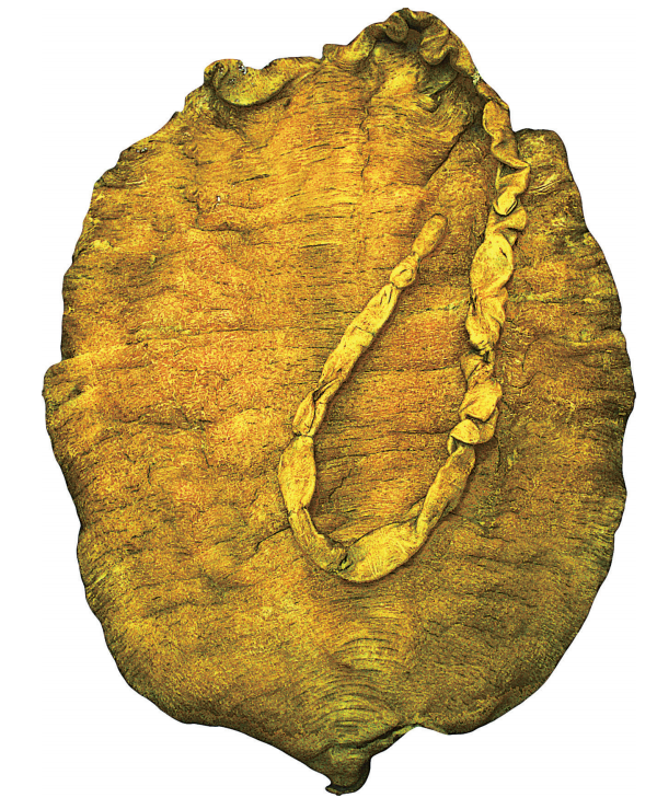 黃唇魚肚由黃唇魚魚鰾幹製而成。1934 年,鴻賓樓飯莊老當家購得這塊魚肚。其重量為 920 克,周長 115 厘米,堪稱珍品。1983 年,英國前首相希思訪華時在鴻賓樓入宴,為了款待貴賓,飯莊廚師將魚肚右邊一根小辮發製後製作了一道雙色魚肚,贏得賓客的滿堂喝彩。