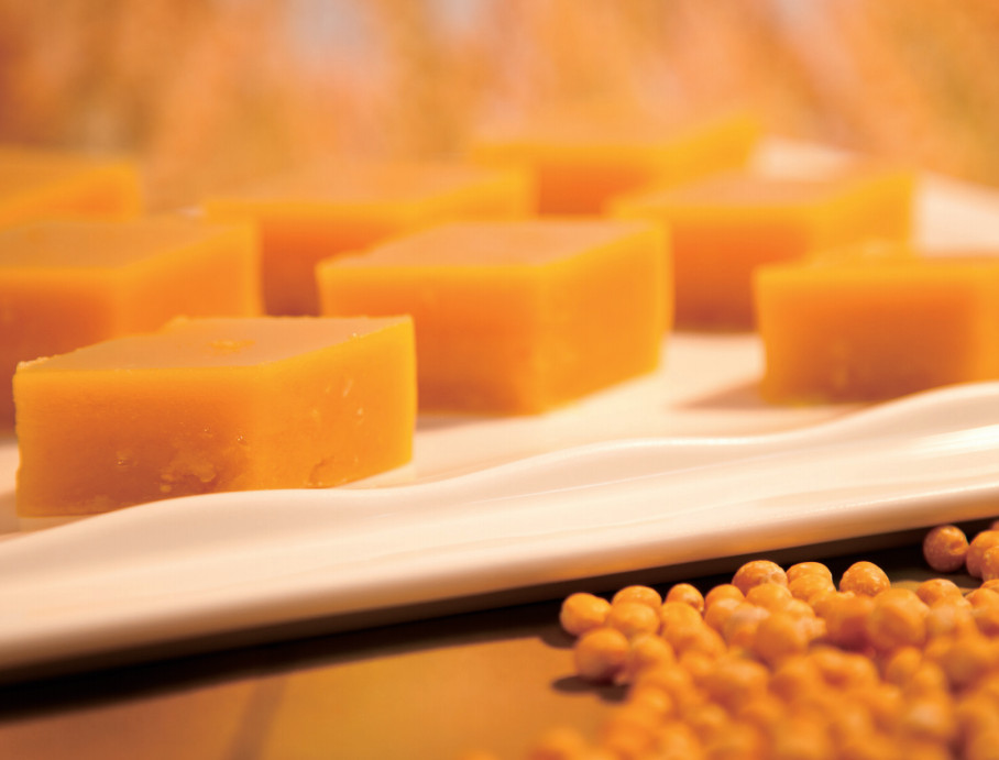 豌豆黃色澤金黃,豆沙細膩,入口清涼爽滑