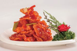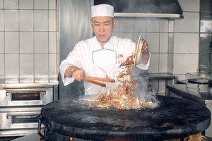 烤肉是具有北京特色的風味菜品,是將切好的牛、羊肉片醃漬後,置於一種特製的圓形鐵盤上(又稱“炙子”)烤製而成。北京人吃烤肉的曆史起源於明代。《明宮史·飲食好尚》中曾記載:“凡遇雪,則暖室賞梅,吃炙羊肉。”後這一吃食流傳民間。烤肉宛始創於 1686年,以烤牛肉起家,與同樣創建於清代的烤肉季合稱北京烤肉之魁——“南宛北季”,“南宛”即烤肉宛。