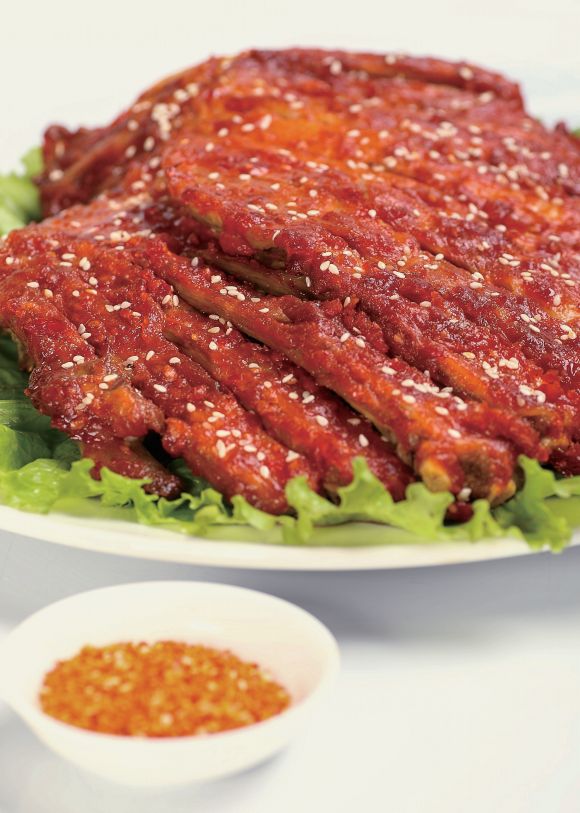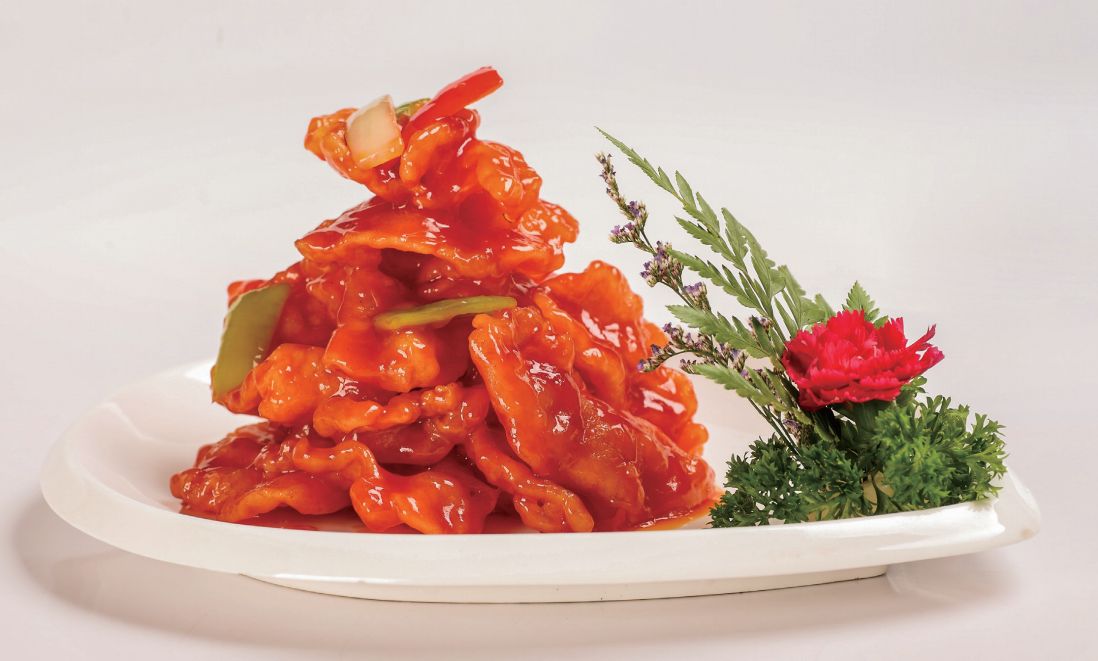 焦炒牛肉顏色紅亮,口感酥脆,口味酸、甜、鹹、微辣兼具