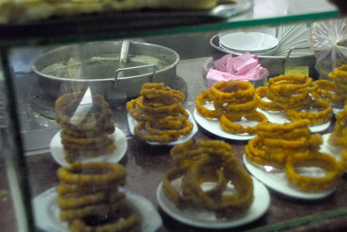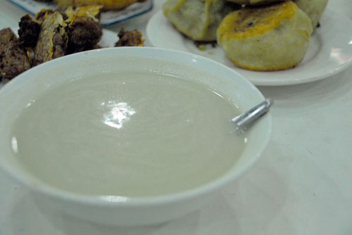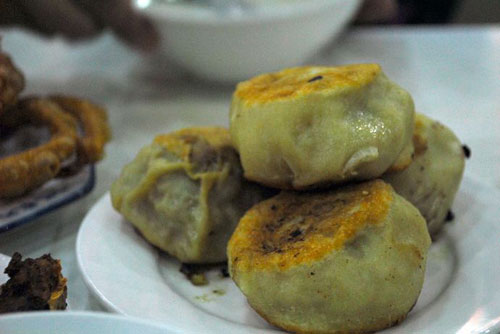 隆福寺小吃店很像傳統的國營飯店,現到櫃台上買票,然後憑票到各個窗口去買自己中意的食物。窗口成凹字形排開,爆肚、豆麵丸子湯、羊雜碎湯、門釘肉餅、艾窩窩、豆汁、焦圈、酥肉、豌豆黃、炒疙瘩……這些小吃,光是名字,就足夠我記一陣子的了。