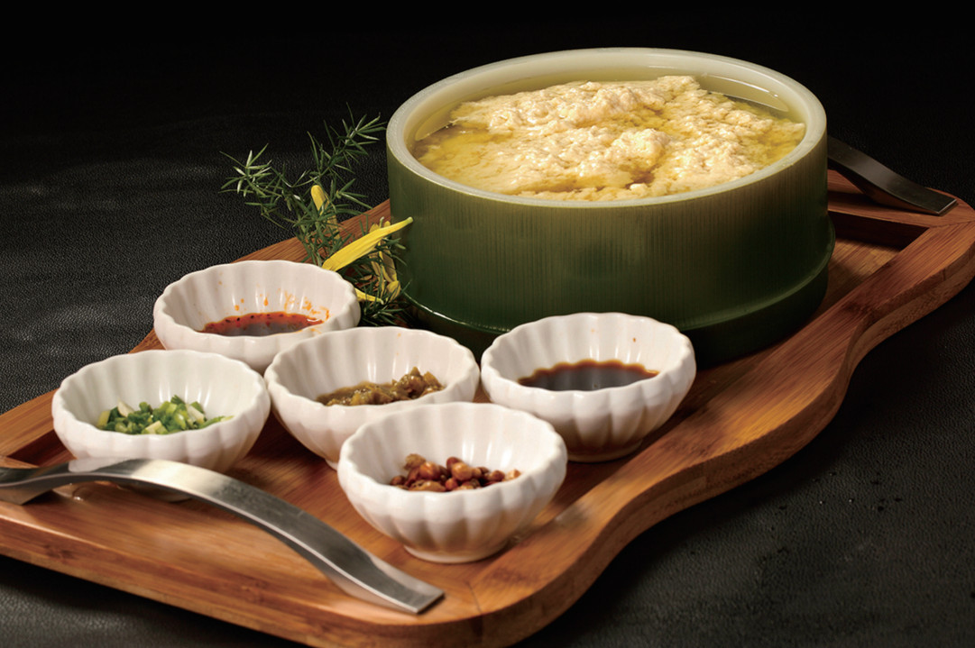 河水豆花白如雪、軟似棉,再配上精製的調料蘸食,充分體現了四川風味麻辣濃香、鹹鮮酸甜的特點