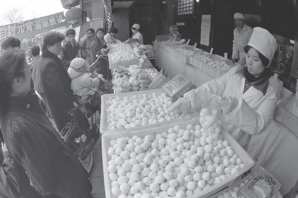 1992年元宵節前夕,市民在馬凱餐廳的攤位前購買元宵