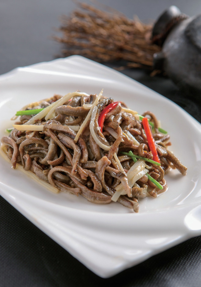 子龍脫袍以鱔魚為主料,色澤豔麗,鮮嫩味美,滑嫩適口