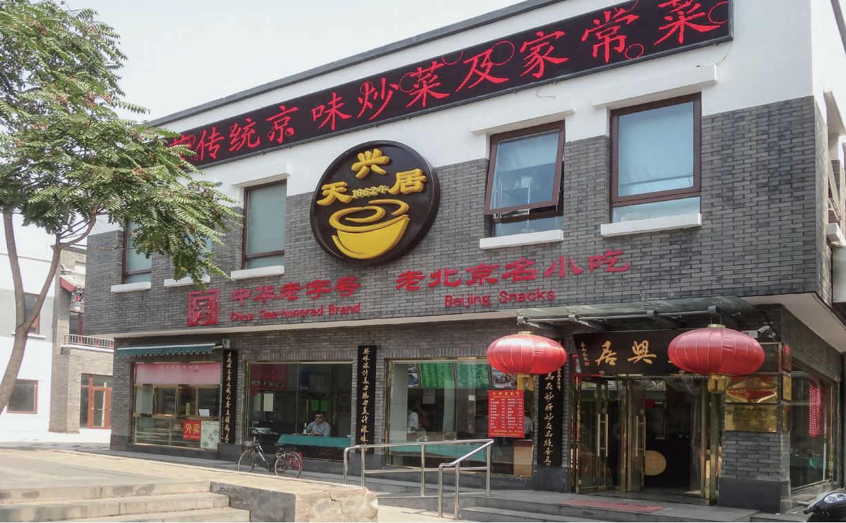 天興居,原名“會仙居”,是劉永奎於1862年在北京前門外鮮魚口創立的。一開始,會仙居隻經營酒菜,後添自製的醬肉和火燒。1900年,會仙居開始經營白水雜碎,後來改良成炒肝,名噪一時。1933年,洪瑞和沙玉福二人合夥在會仙居斜對麵開設了天興居,專營炒肝。1956年公私合營時,會仙居與天興居合並為天興居。在融和了兩家的製作技藝之後,北京炒肝得到了繼承和發展。