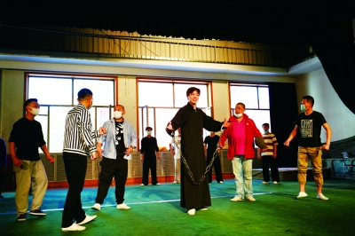 譚孝曾、閻桂祥深入排練場進行指導