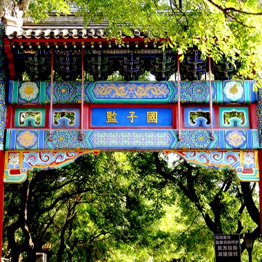 國子監是元明清三代國家設立的最高學府和教育行政管理機構,又稱“太學”“國學”。它始建於元代至元二十四年(公元1287年),明代永樂,正統年間曾大規模修葺和擴建,清乾隆四十八年又增建“辟雍”一組皇家建築,形成現在的規製。國子監整體建築坐北朝南,為三進院落,占地麵積二萬七千多平方米。中軸線上依次排列著集賢門(大門)、太學門(二門)、琉璃牌坊、辟雍殿、彝倫堂、敬一亭。古代在國子監讀書的學生稱為“監生”。國子監不僅接納全國各族學生,還接待外國留學生,為培養國內各民族人才,促進中外文化交流,曾起到積極的作用。國子監主體建築經曆700多年依然保存完好,是唯一保存完整的古代最高學府校址,國子監以其悠久的曆史,獨特的建築風貌,深厚的文化內涵而聞名於世。