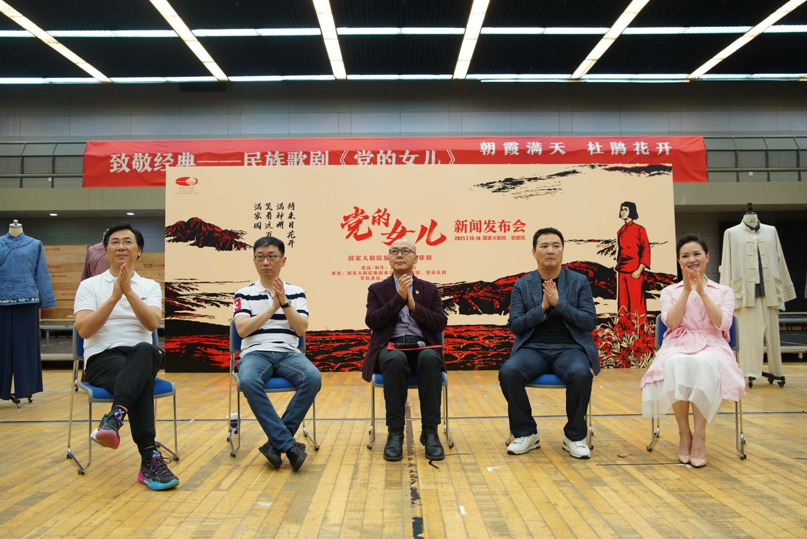2021年7月5日下午,該版《黨的女兒》在國家大劇院排練廳舉辦了新聞發布會。國家大劇院副院長趙鐵春與指揮李心草、導演汪俊、雷佳、廖昌永等主創主演悉數亮相,講述分享了該劇的創作初衷和劇目亮點。
