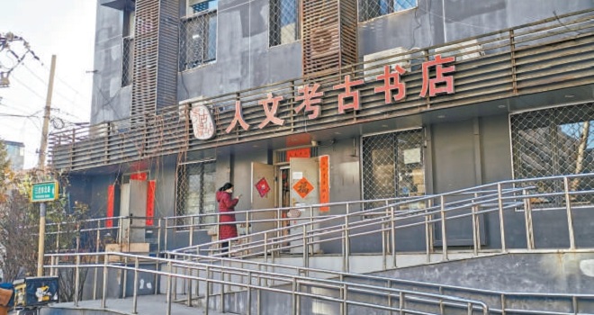 從花園橋地鐵站出來,穿過幾條人煙稀少的街巷,人文考古書店就在一幢黑色小樓的一層,六個紅色大字組成的招牌頗為傳統。