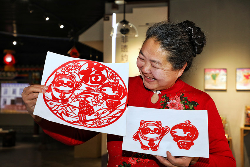 北京冬奧會開幕以來,冰墩墩、雪容融迅速走紅,深受大家喜愛。冬奧吉祥物也給民間手工藝人帶來無盡的靈感。以冰墩墩、雪容融為靈感的剪紙、堆繡、葫蘆烙畫、麵塑等傳統手工藝品也紛紛從手工藝人手中誕生出來,用新潮的冬奧和流行元素,給古老的非遺技藝注入了新的活力。(來源:人民網 攝影:張延)