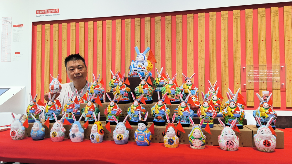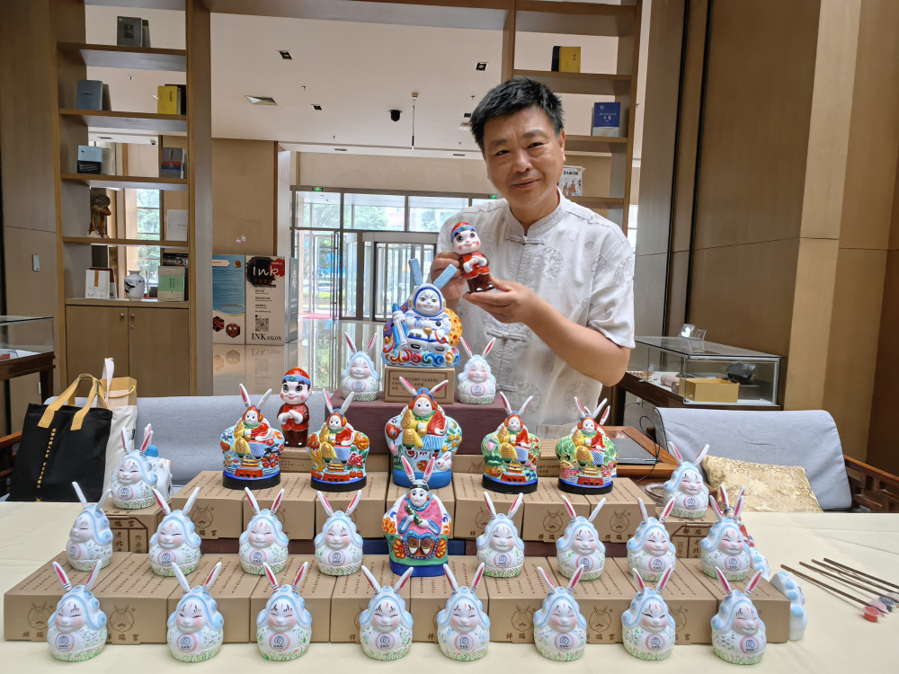 在與傳統文化結合方麵,他先後設計出北京中軸線係列、北京風情係列、北京老字號係列,以及與春夏秋冬、二十四節氣、北京二十四城門結合等一係列富有內涵的兔兒爺作品,吸引了不少年輕人。