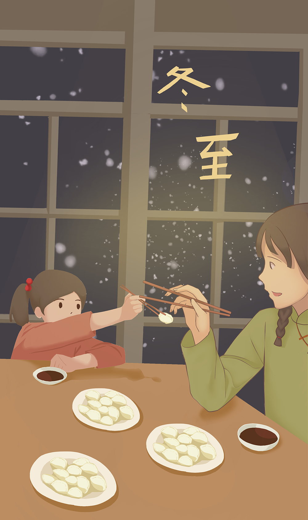 冬至,又稱日南至、冬節、亞歲等,兼具自然與人文兩大內涵,既是二十四節氣中一個重要的節氣,也是中國民間的傳統祭祖節日。冬至是四時八節之一,被視為冬季的大節日,在古代民間有“冬至大如年”的講法。冬至習俗因地域不同而又存在著習俗內容或細節上的差異。在中國南方地區,有冬至祭祖、宴飲的習俗。在中國北方地區,每年冬至日有吃餃子的習俗。冬至是“二十四節氣”之第22個節氣,鬥指子,太陽黃經達270°,於每年公曆12月21-23日交節。(作者:蘇楊毓嬌)