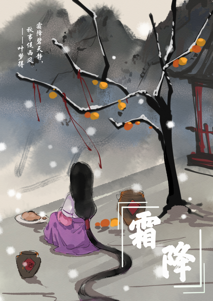 俗話講“霜降殺百草”,霜降過後,植物漸漸失去生機,大地一片蕭索。(作者:賢二水墨)
