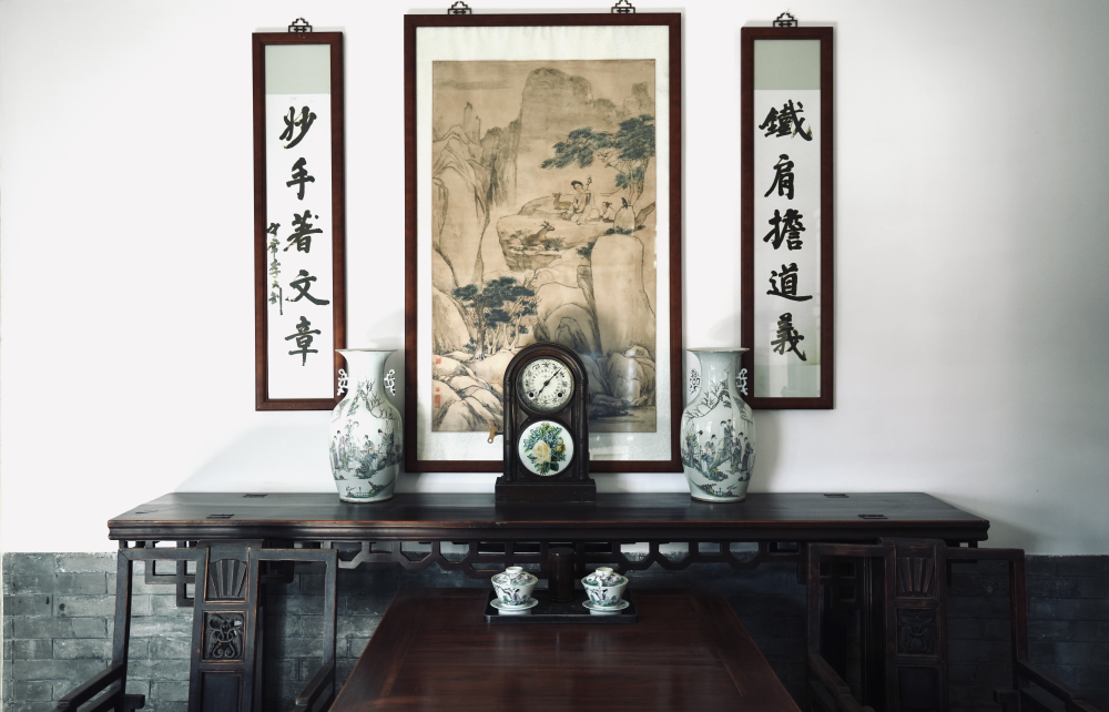 堂屋是李大釗一家的餐廳和接待室。一進門,首先映入眼簾的是一幅中堂畫,這是根據李大釗大女兒李星華的回憶重新繪製的。