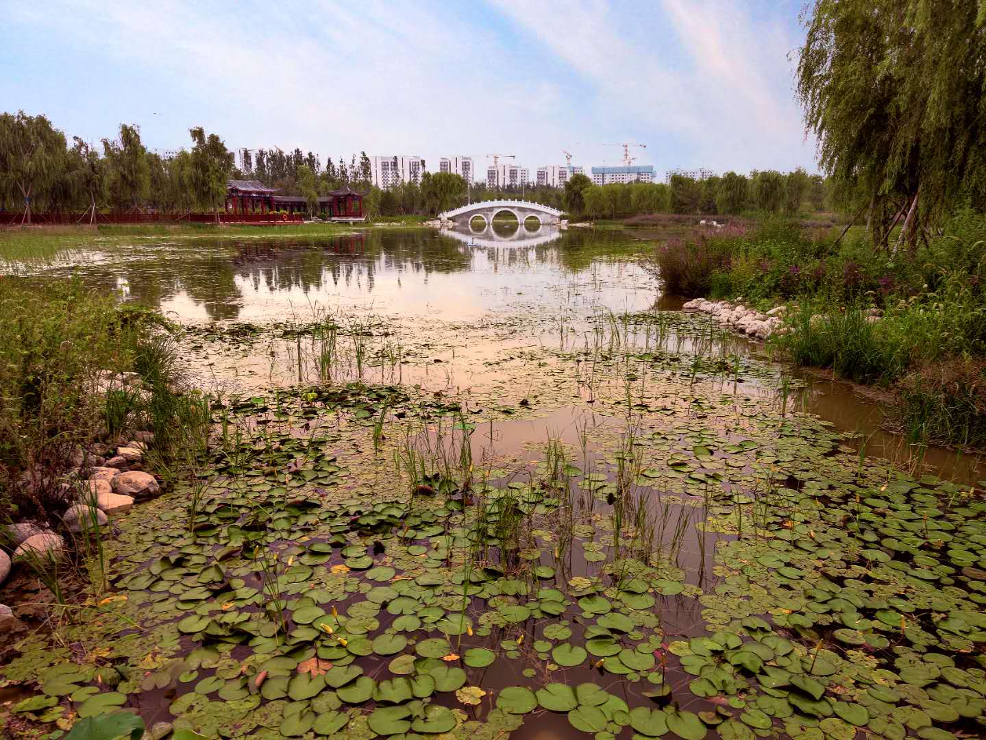 大興區舊宮城市森林公園已經成為綠隔上的一顆“明珠”。油鬆、柳樹等鄉土喬木打下綠色基底,原址上的大樹也得到保留。旱溪和水係連接貫通,在形成特色濕地景觀的同時,為野生動物營造了棲息地。(大興區園林綠化局)