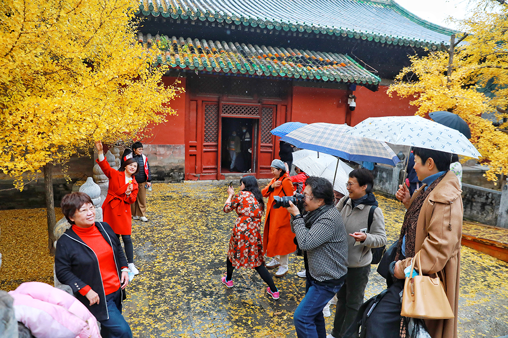 廣大市民遊客在大覺寺觀賞古寺秋葉,位於海澱區的大覺寺始建於遼代,寺內一株古銀杏樹齡已逾千年,至今枝繁葉茂,被譽為“銀杏樹王”。吸引不少市民前來觀賞。此外,寺內的楓葉也已呈現出多彩的顏色,格外迷人。