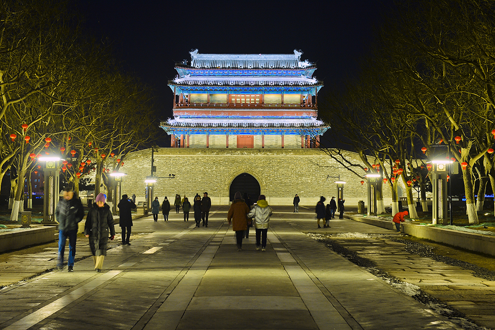 夜幕降臨,“點亮中軸線”景觀扮靚北京中軸線,為春節和奧運添彩。永定門在夜景照明中還融入了設計元素,環保變色燈具和光暈可隨主題,變換營造濃厚的冬奧氛圍。