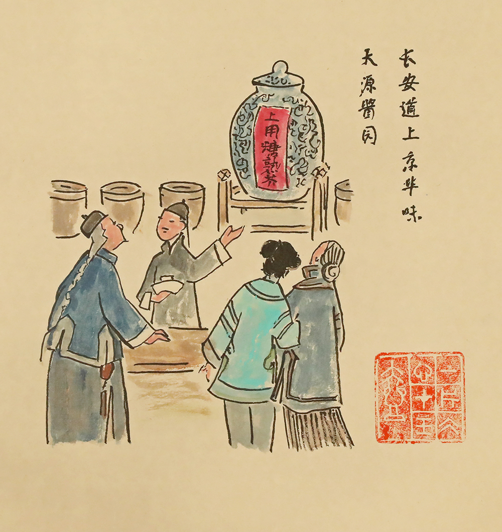 “天源醬園”開業於清同治八年(1869年)至今已有130多年的經營曆史,是由當時京城“四大當鋪“之一的的劉湛軒用二百兩白銀買下一家即將倒閉的油鹽店而開辦的。店主當時的目的是為了接觸上層社會,所以請醬菜師傅引進清宮禦膳房的技術,前店後廠,自產自銷,尤其以生產甜麵醬和各種甜醬菜聞名。(作者:李濱聲、陳惠展)