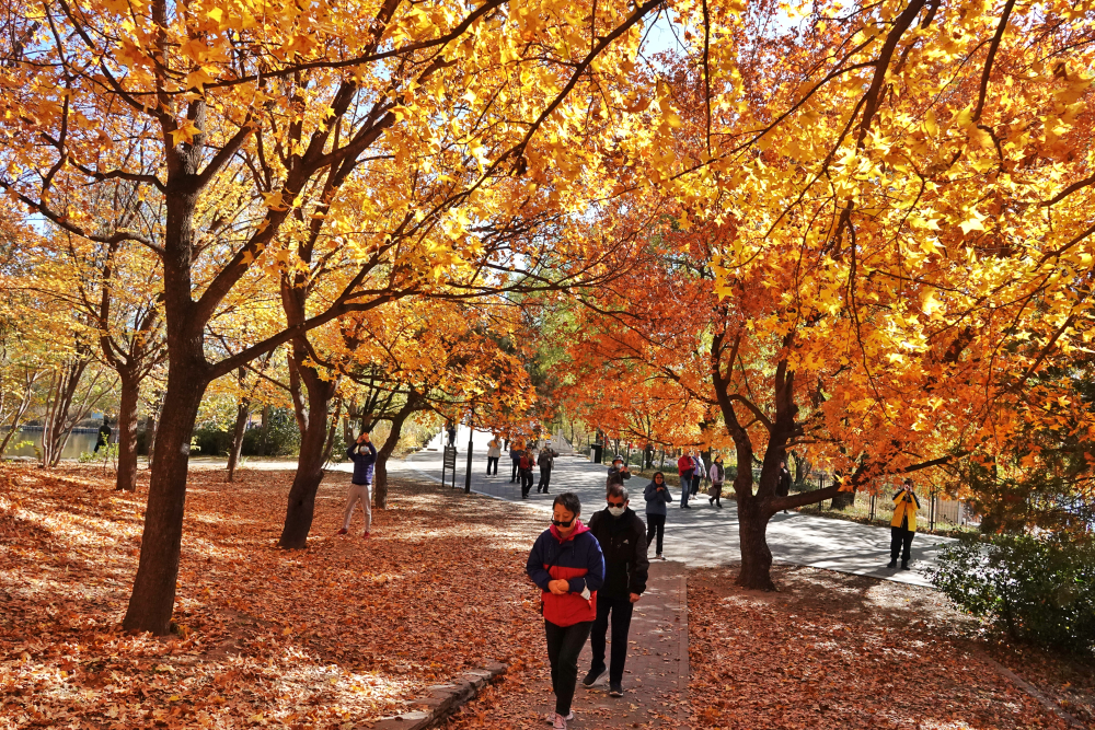 10月的北京宛如一幅濃墨重彩的畫卷。紅磚綠瓦的古老建築,在斑斕的秋色中多了份莊重與古韻。落葉飄落的街景中,萬物以自有的方式,呈現著秋的氣息。(攝影:楊建國)