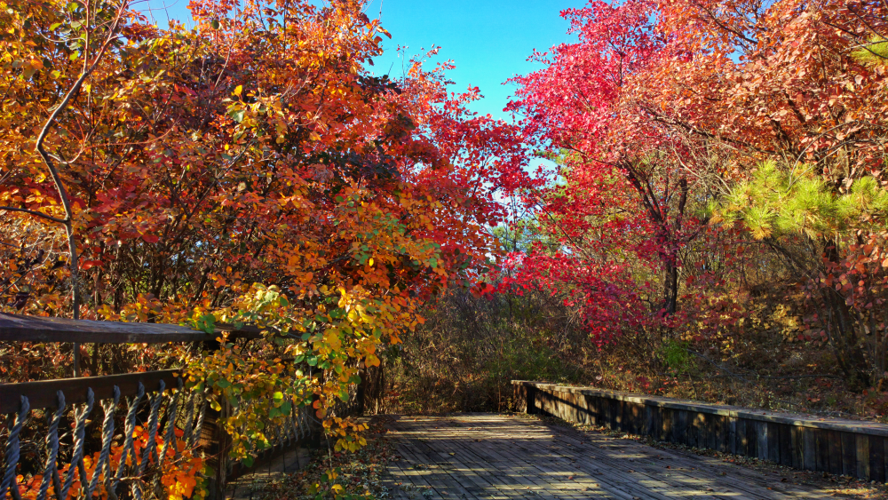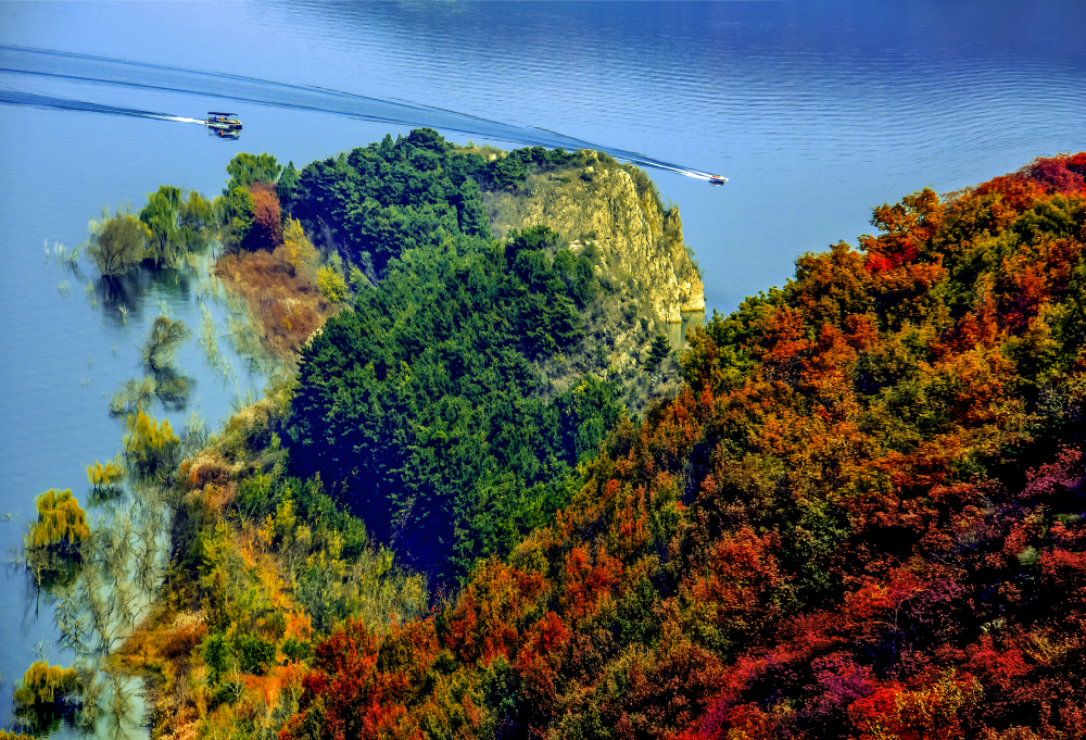 金秋時節,北京市平穀區金海湖景區周邊彩葉林陸續披上紅裝,與波光粼粼的金海湖交相輝映,構成一幅色彩斑斕的秋日山水畫卷。