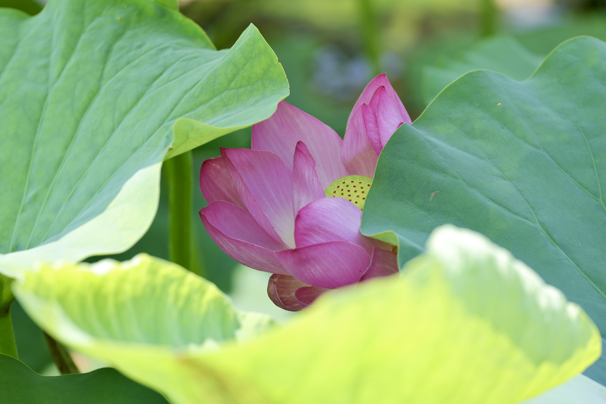 盛夏驕陽下,北京城的清荷以最蓬勃的姿態綻放。粉白相間的荷花或含羞半掩,或傲然盛放,碧色荷葉如傘如蓋,在微風中翻湧成翡翠浪濤。蜻蜓點水掠過花尖,薄翼折射出粼粼波光;鴨子撥開浮萍悠然遊弋,攪碎一池雲影;麻雀掠過水麵,尾羽掃落幾滴晨露,驚起漣漪串串。