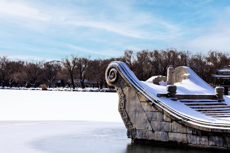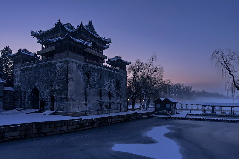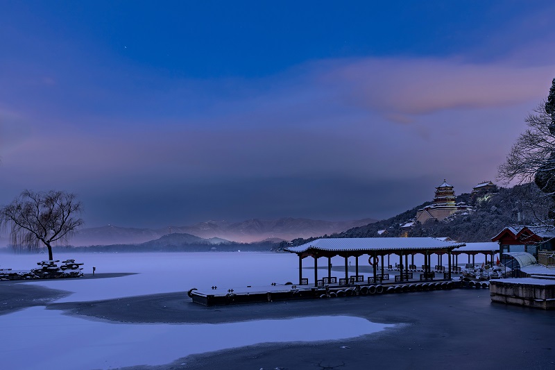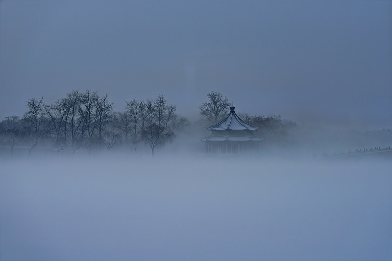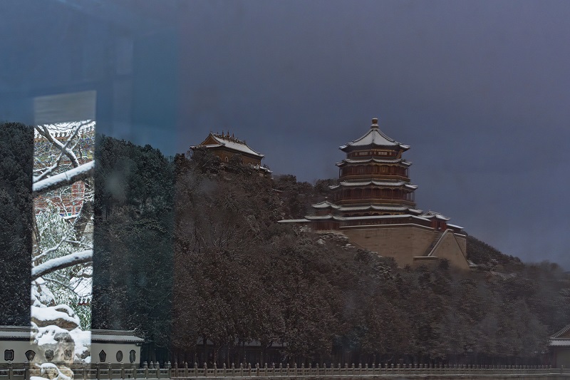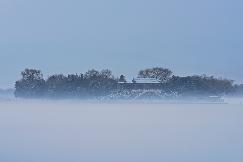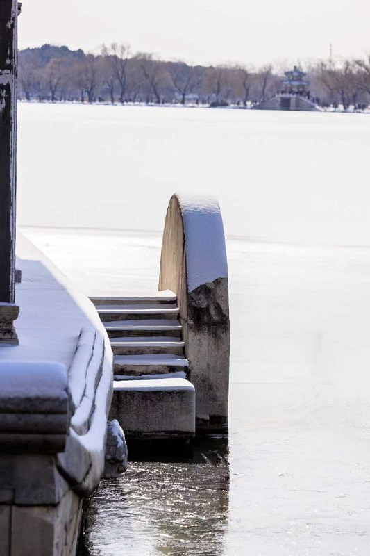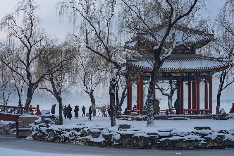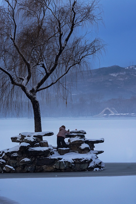 頤和園的冬,褪去了以往的喧囂,以一場靜謐的雪,將此間景色化作水墨長卷。(攝影:阮平)