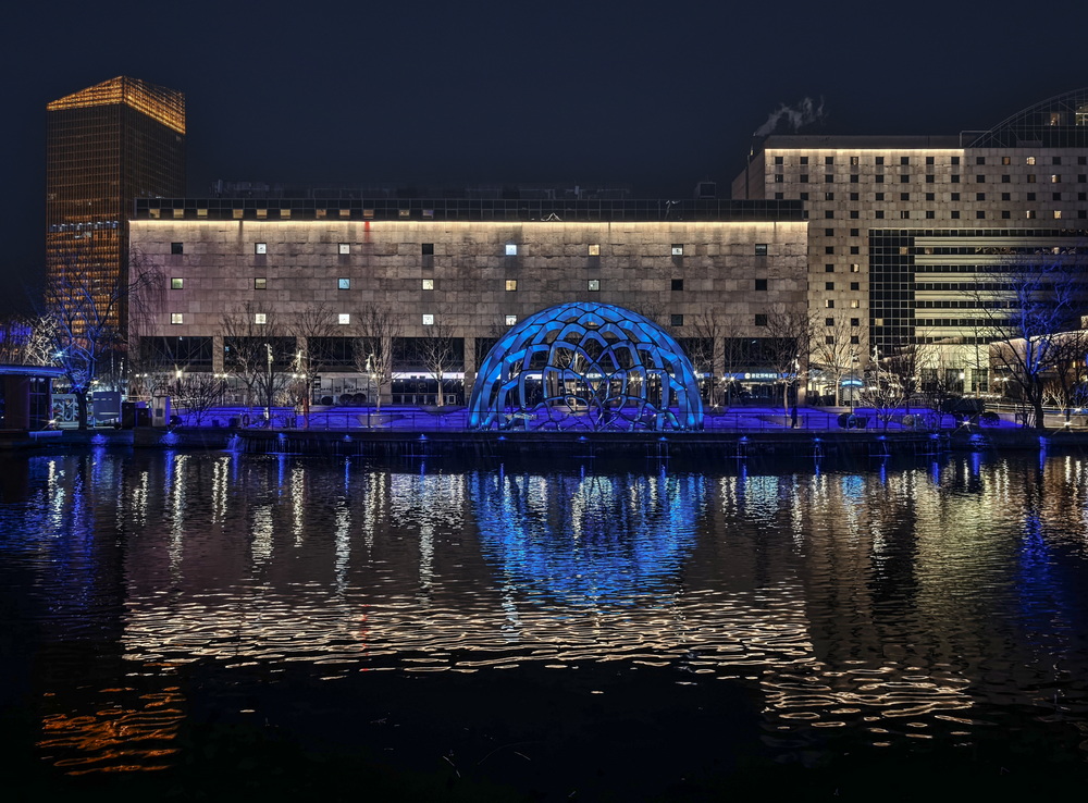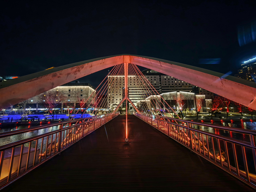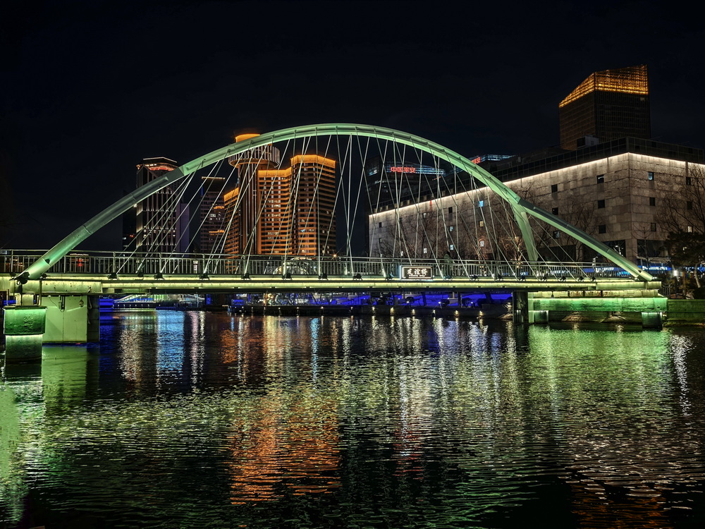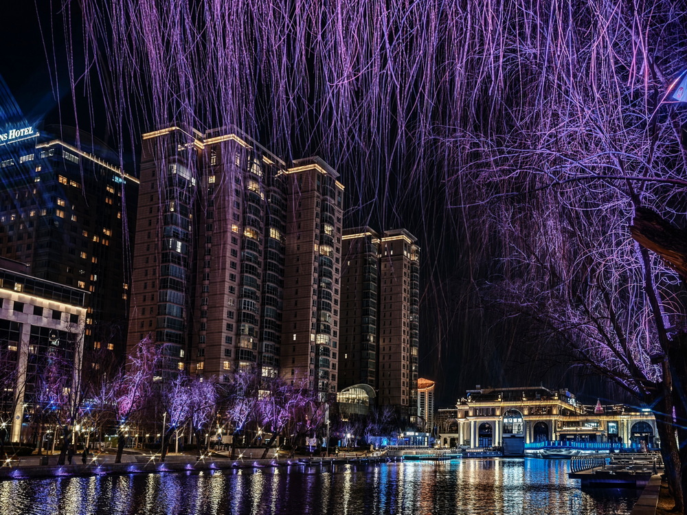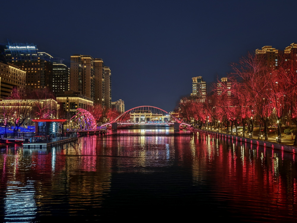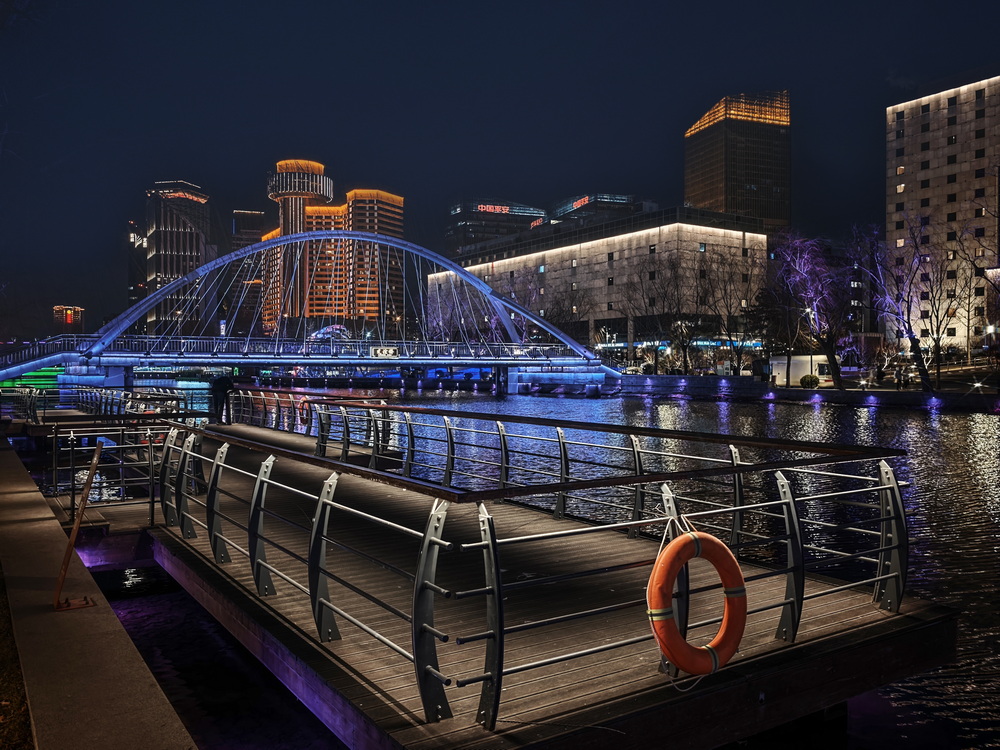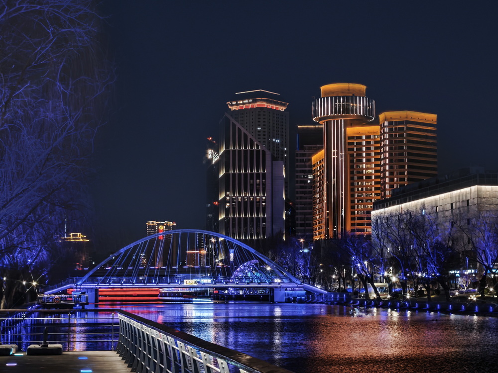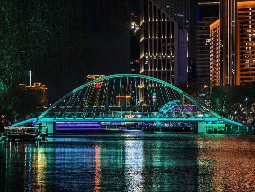 冬夜的風裹著涼意掠過亮馬河,卻吹不滅滿河的璀璨。岸邊的燈帶似凝固的星河,沿著河道蜿蜒舒展,暖黃與銀白交織著,把周邊建築的輪廓暈成朦朧的剪影。偶爾有行人裹緊圍巾駐足,手機鏡頭對準河麵,想留住這冬夜獨有的光影。